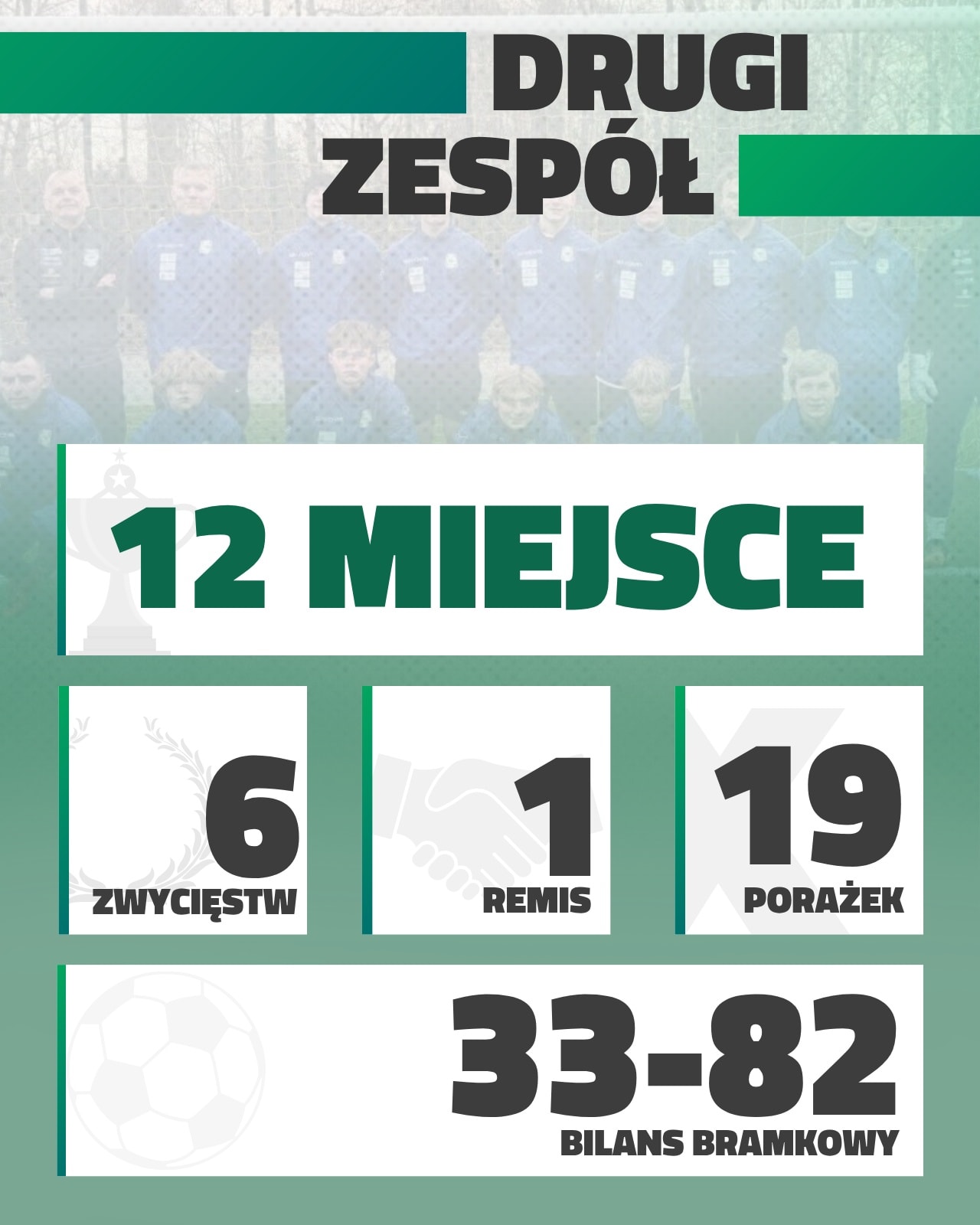 Drugi zespół w sezonie wygrał 6 spotkań, zanotował 1 remis oraz 19 porażek. Czekamy na kolejny sezon z nowymi wyzwaniami i możliwościami!